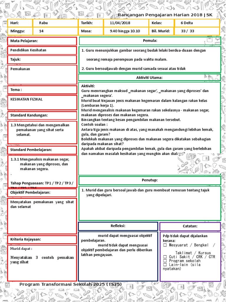 Rph pendidikan kesihatan tahun 6 2021. RPH dalam bentuk SOFTCOPY MSWORD. Dapatkan segera RANCANGAN PENGAJARAN HARIAN SETAHUN sekarang.